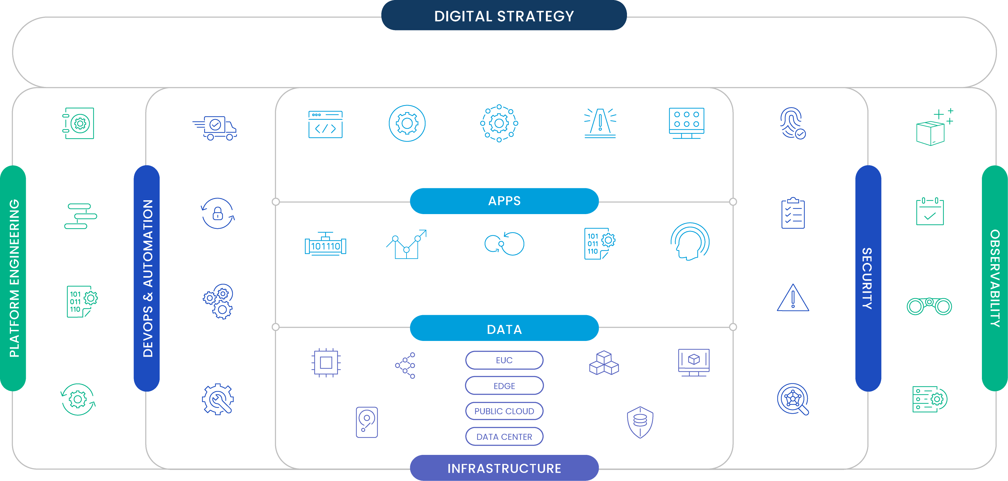 The Digital Delivery Platform, or DDP, serves as a framework for our Accelerators across the entire enterprise IT environment. Many clients use it as a reference architecture, even placing their own logo and branding on it. And at a high level, it helps identify the key points of integration across your entire environment, where stitching is needed to accelerate progress. And since it has evolved and been battle tested as a guide over the last decade, the DDP ensures implementations are done right the first time as it simplifies, drives alignment, and reduces risks.